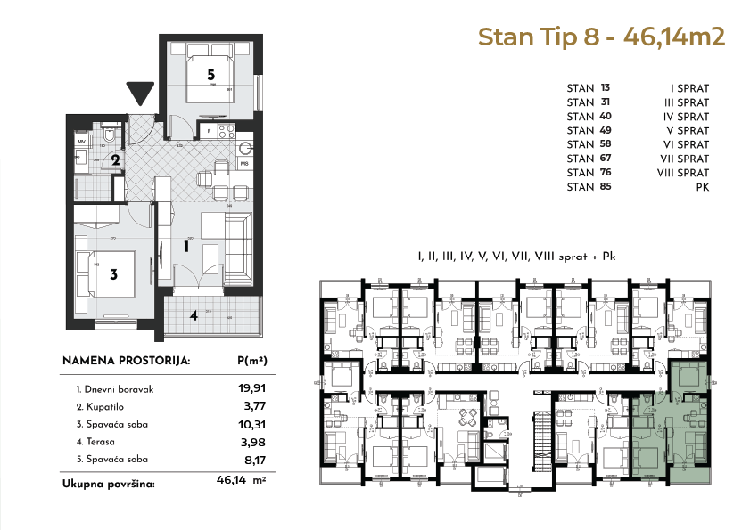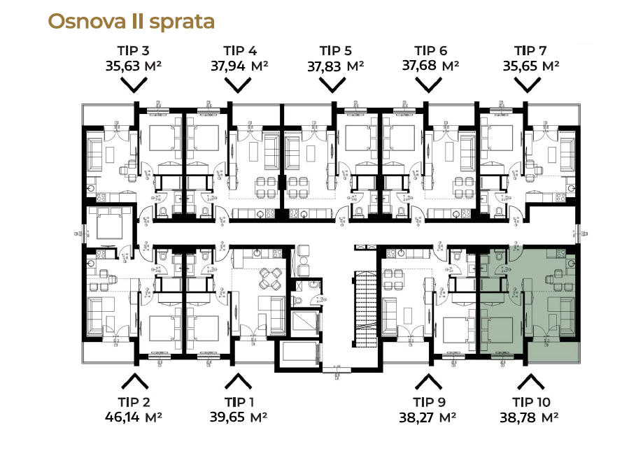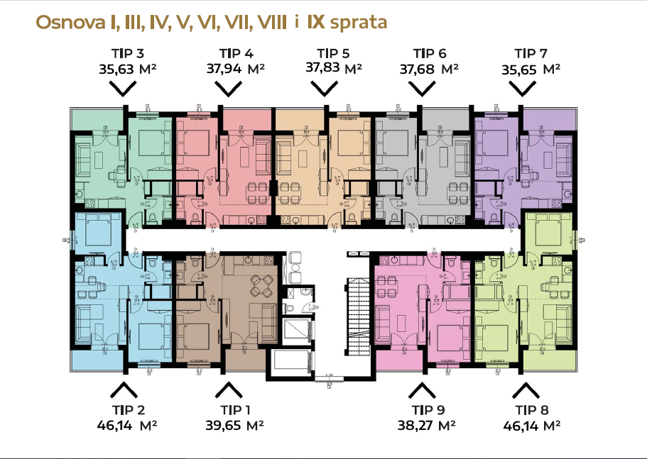 U okviru ovog objekta posedujemo sjajnu ponudu stanova različitih tipova i kvadrature. U nastavku možete da pregledate koje sve tipove stanova imamo u ponudi i da se opredelite za neki od njih.